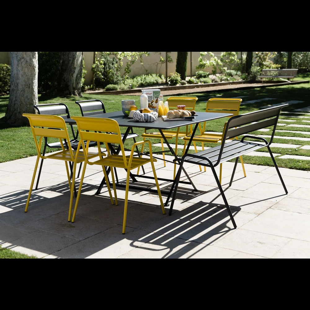 Entièrement recouvert d’une peinture Ă©cologique et anticorrosion en polyester cuit au four, ce fauteuil ne contient pas de mĂ©taux lourds ni de solvant.