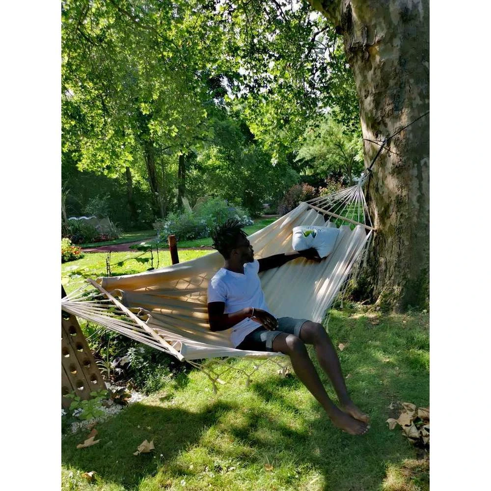 Hamac à franges, en coton, très confortable.