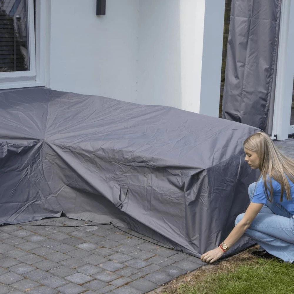 La housse de mobilier extérieur de madison protégera efficacement votre meuble de jardin contre la pluie, la neige et le gel pour les années à venir ! Fabriquée en polyester indéchirable résistant aux uv, cette housse protège de la poussière et de la décoloration. La housse de meubles d’extérieur ne prendra pas beaucoup de place lorsqu’elle n’est pas utilisée et protégera votre canapé au fil des années contre l’usure causée par les conditions météorologiques. De plus, cette housse de meubles extérieurs est perméable à l’air, ce qui réduit la condensation, et elle est équipée d’un cordon de serrage avec bouchon pour une bonne fixation.