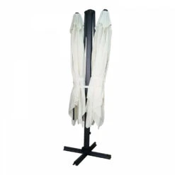 Double Parasol Déporté 3m Et 4 Dalles Lestées Aluminium Blanc