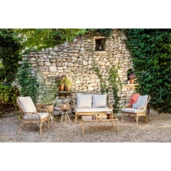 Salon De Jardin Bas Ligne AGAPE 4 Pièces En Résine Imitation Bambou