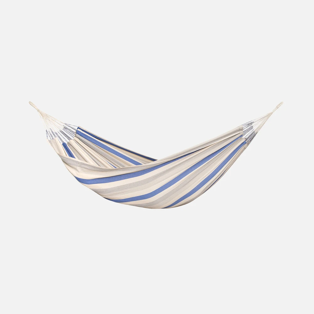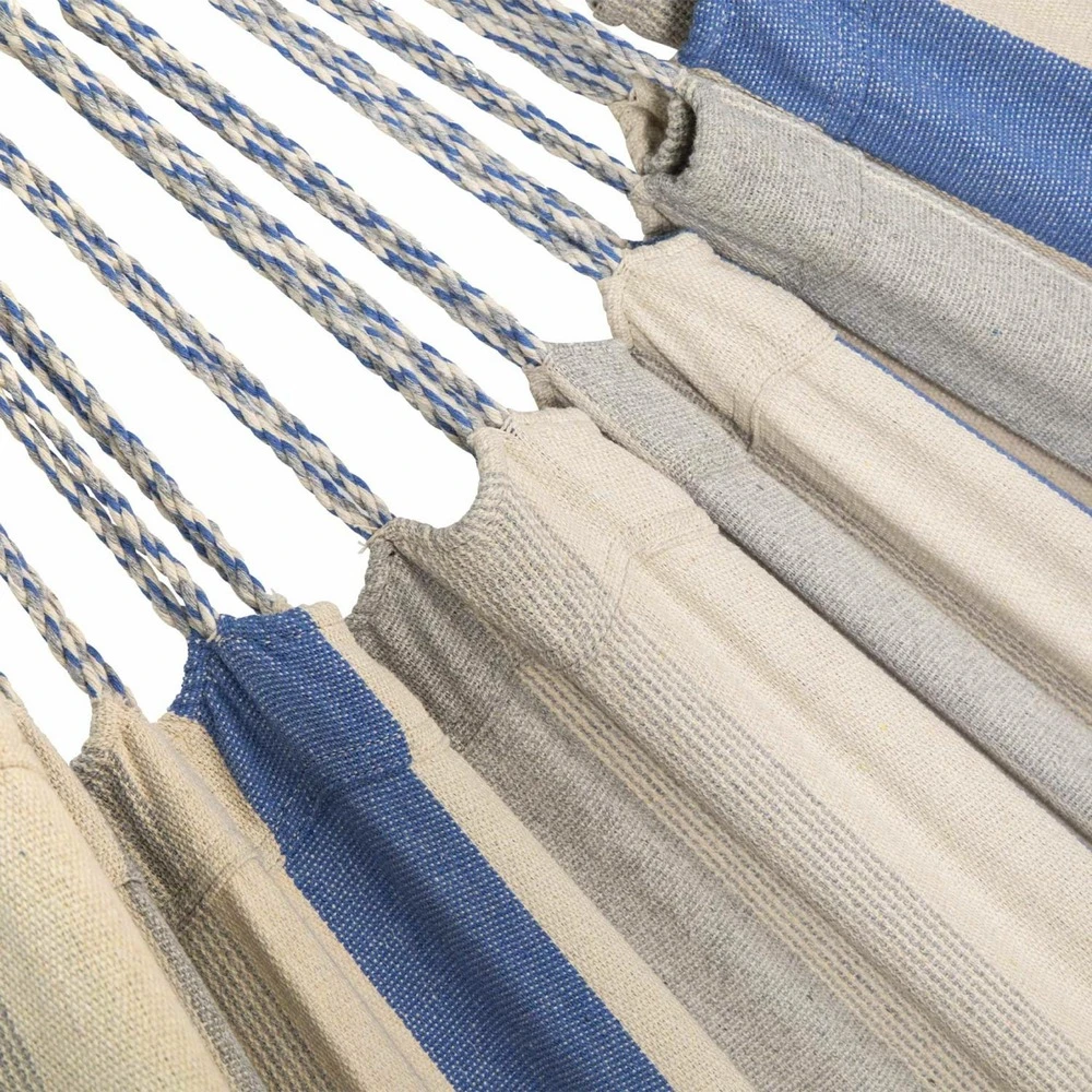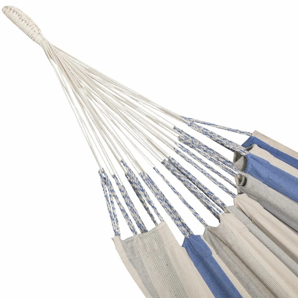 Toile De Hamac Rayée – Bleu Turquoise / Gris Clair / écru. 1 Personne. 100% Polycoton. 220x140cm