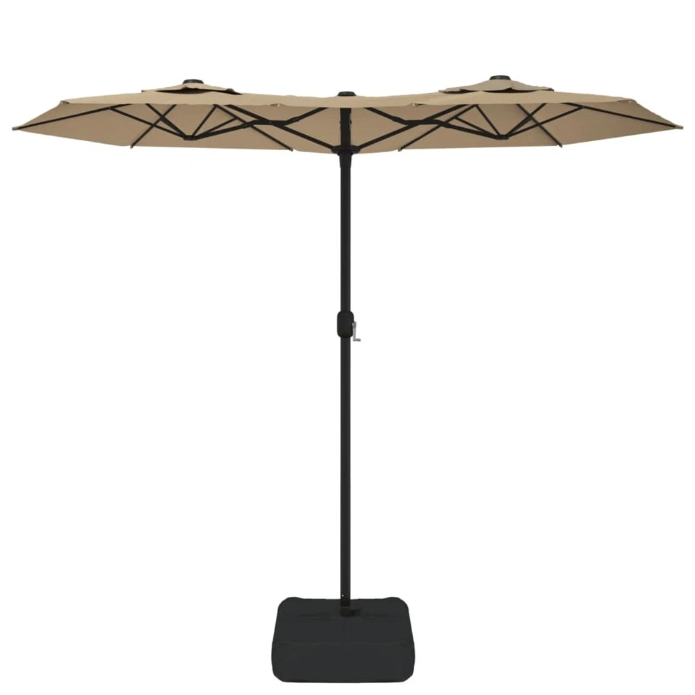 Cet élégant parasol à deux têtes avec led est un choix parfait pour créer de l’ombre et vous protéger des rayons uv nocifs. Matériau durable : fabriqué en polyester anti-uv et anti-décoloration, le parasol de jardin vous offre une protection optimale contre le soleil et est facile à nettoyer.cadre robuste : le solide mât en fer enduit de poudre, ainsi que les nervures durables, rendent le parasol de jardin très stable et robuste.lumières led brillantes : les lumières led intégrées du parasol illuminent votre espace de vie extérieur et créent une ambiance chaleureuse et romantique lorsque le soleil se couche.mécanisme à manivelle : grâce au mécanisme de la manivelle, le parasol s’ouvre et se ferme facilement.base solide : la base avec le sac à sable assure la solidité et la stabilité du parasol, même en cas de vent fort ou de forte pluie.